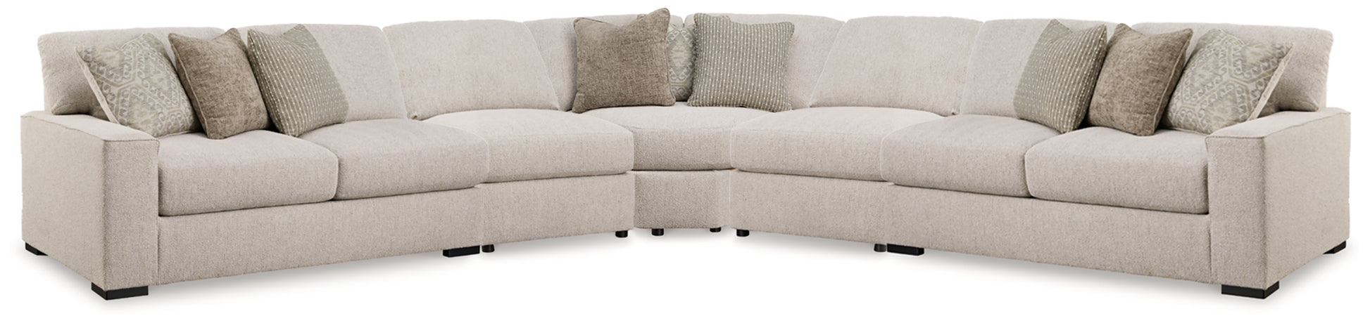 Reminiscent of a fine, subtly patterned herringbone jacket, this casually elegant sectional offers contemporary style in spades. A distinctive curved shape provides plenty of leg room, while soft feather-blend cushions maximize relaxation. Why skimp on comfort and style? With this sectional, you have space to lounge solo or hang out with friends and family.