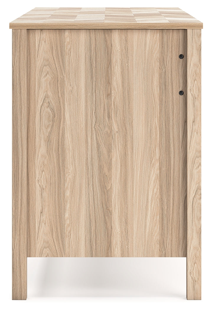 Your home office should reflect your style. Pairing the look of oak grain with a unique chevron pattern, this home office desk introduces a touch of mid-century modern style that's sure to elevate your space. Use this desk as a stand-alone work area, or pair it with the matching desk return to create a larger work surface.