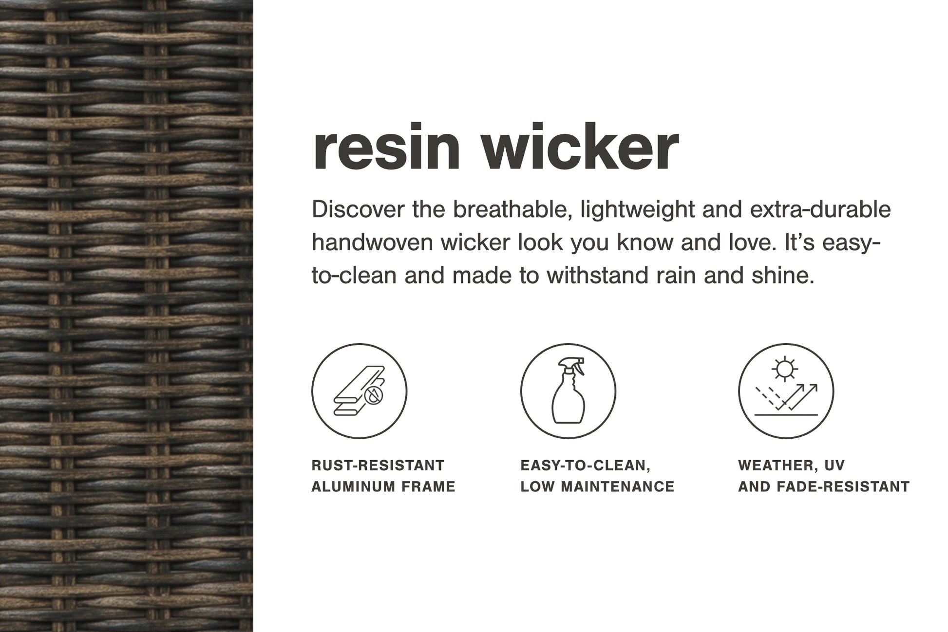 - All-weather resin wicker handwoven over rust-resistant aluminum frame with durable powder coated finish