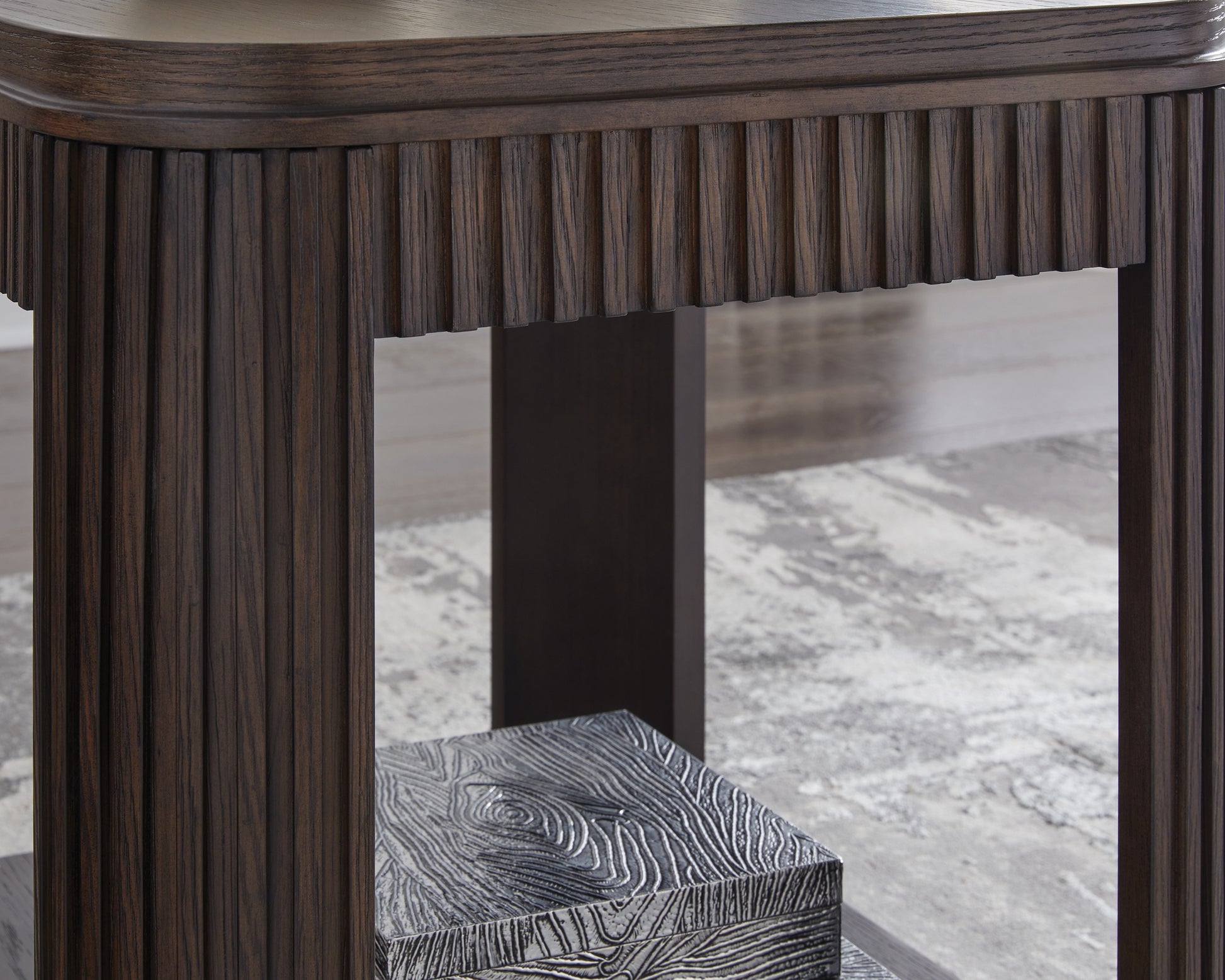 Cool, contemporary flair. Unbeatable function. This end table brings sleek style to everyday living. Fluted details on the apron and posts lend a trendy vibe. For a personal touch, dress up the lower shelf with your favorite decor.