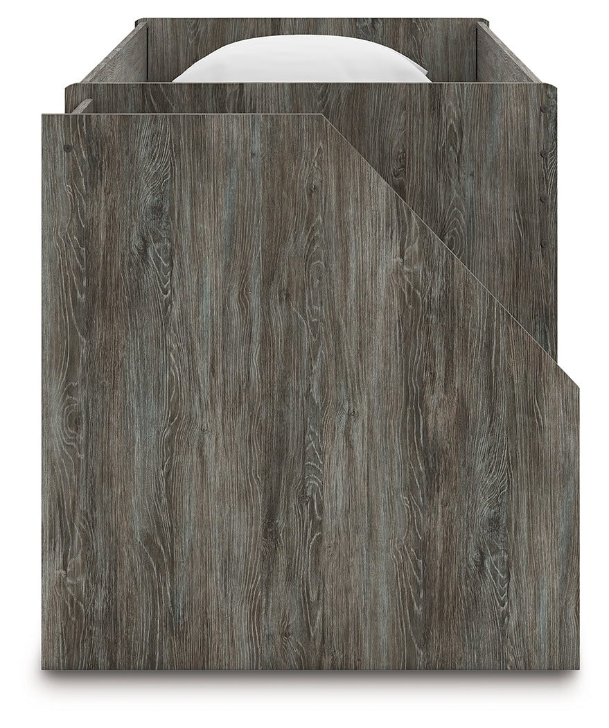 Cool, casual style is for all ages. With this full panel bed with storage, they get the function they need plus the refined design you love. Approachably neutral in a rustic warm gray, it’s adaptable enough to pair with an assortment of existing colors and room decor. Faux metal detailing with nailhead accents lends an industrial edge. Need more storage space? Drawers under the bed help floors stay clutter-free.