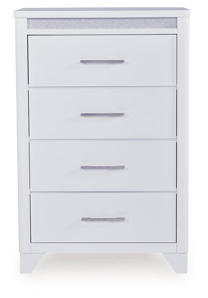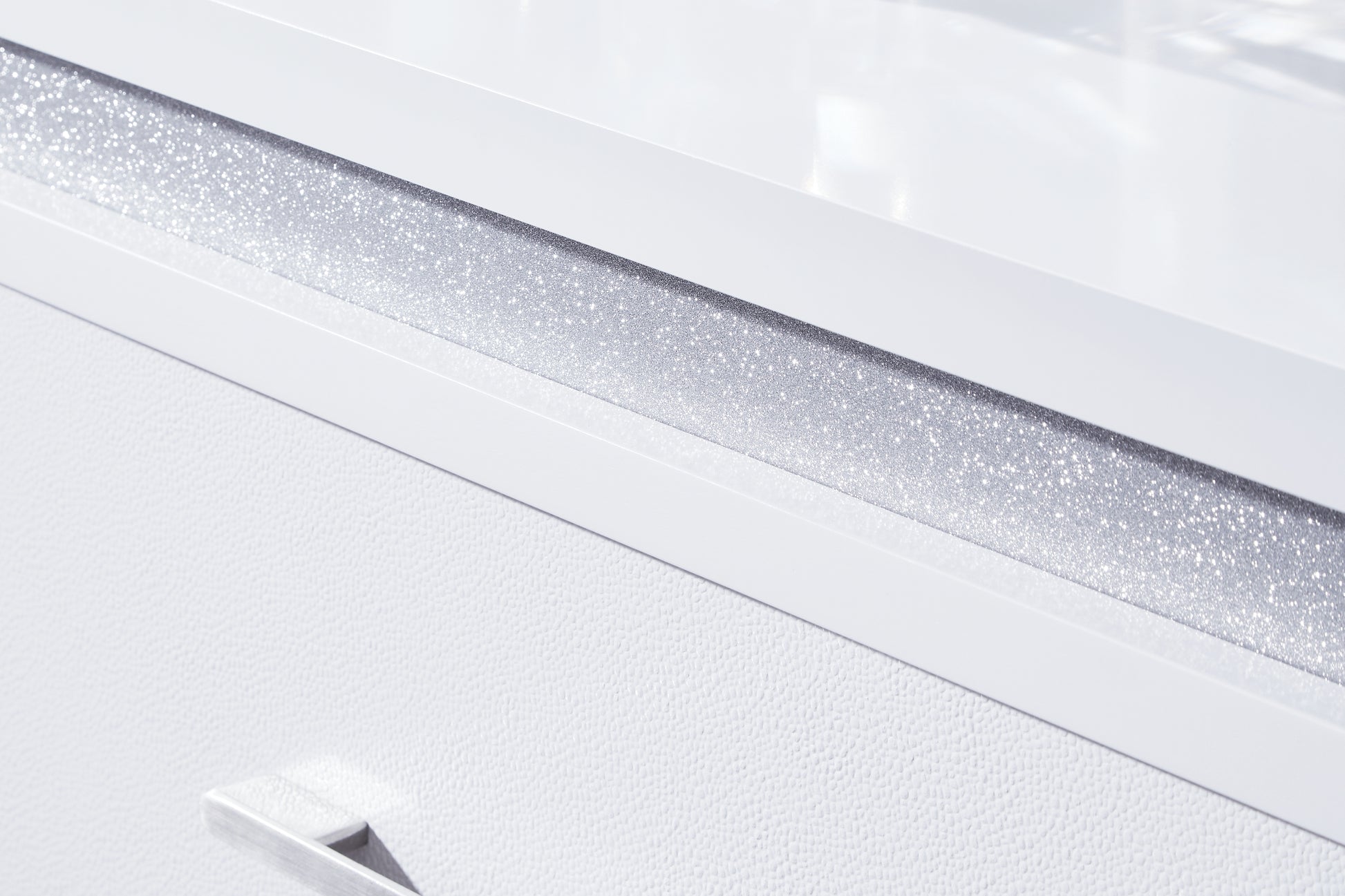 This queen upholstered panel bed is a showstopper, bringing a touch of modern glamour to your sanctuary. A sleek white finish, paired with the cushioned headboard’s off-white fabric and metallic silver accent threads, creates a sophisticated feel. Built-in LED lighting adds a soft glow, making it even easier to get ready in the morning or wind down at night. It’s a simply stunning way to achieve the bedroom of your dreams.