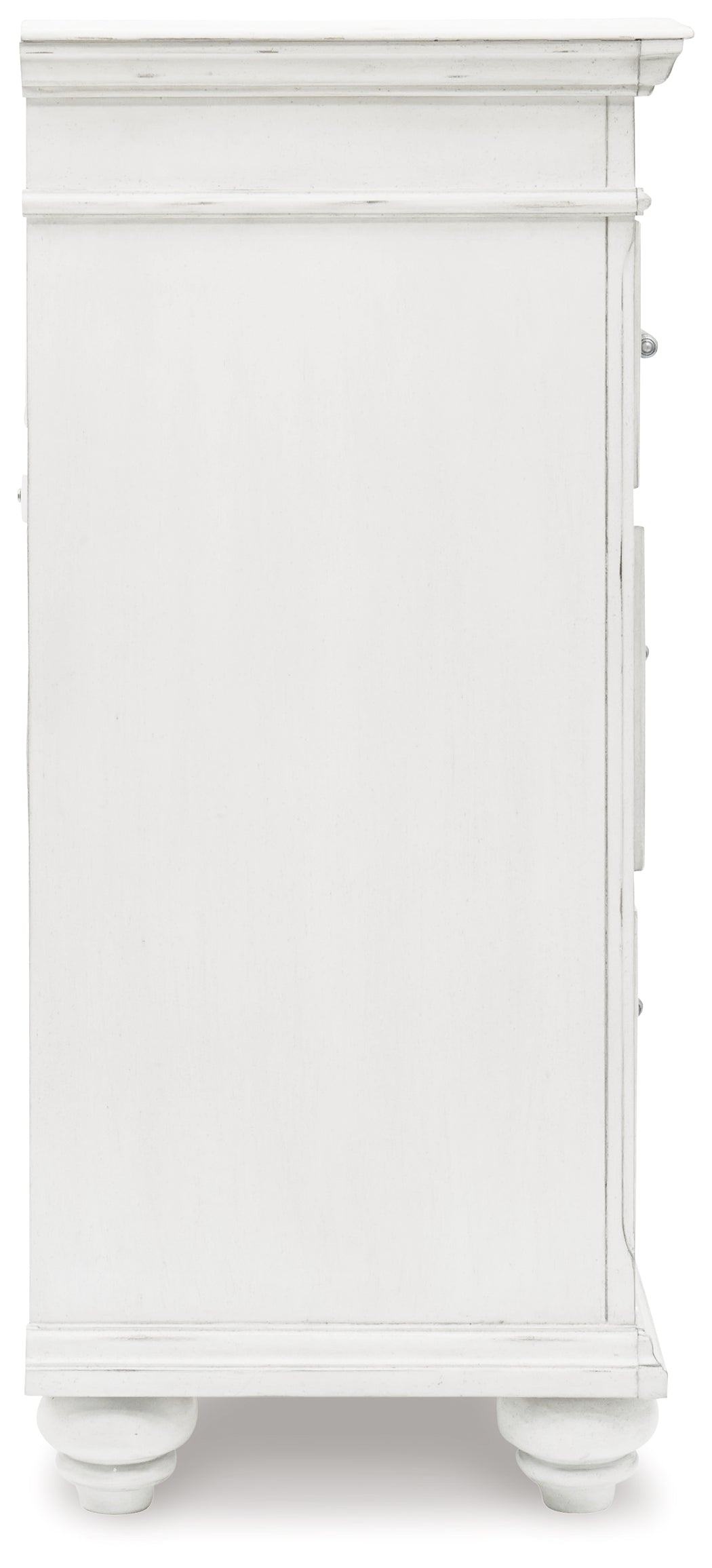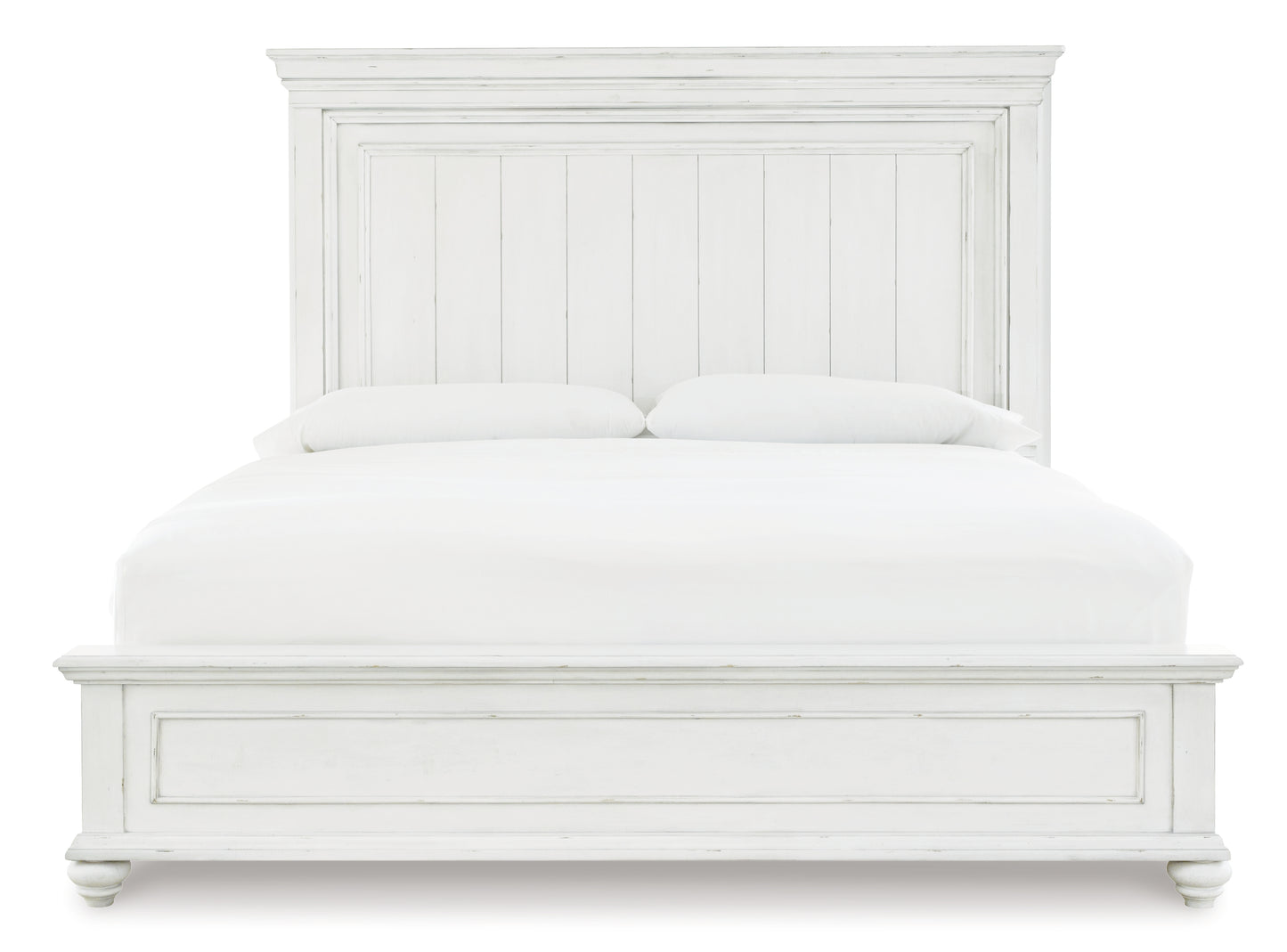 Give your retreat vintage charm with this California king panel bed. In a beautifully distressed whitewash finish, you'll love the headboard's grand style featuring a picture framed panel. Generously scaled moulding from top to bottom, along with bun feet give this bed character—evoking the feel of a quaint cottage escape.