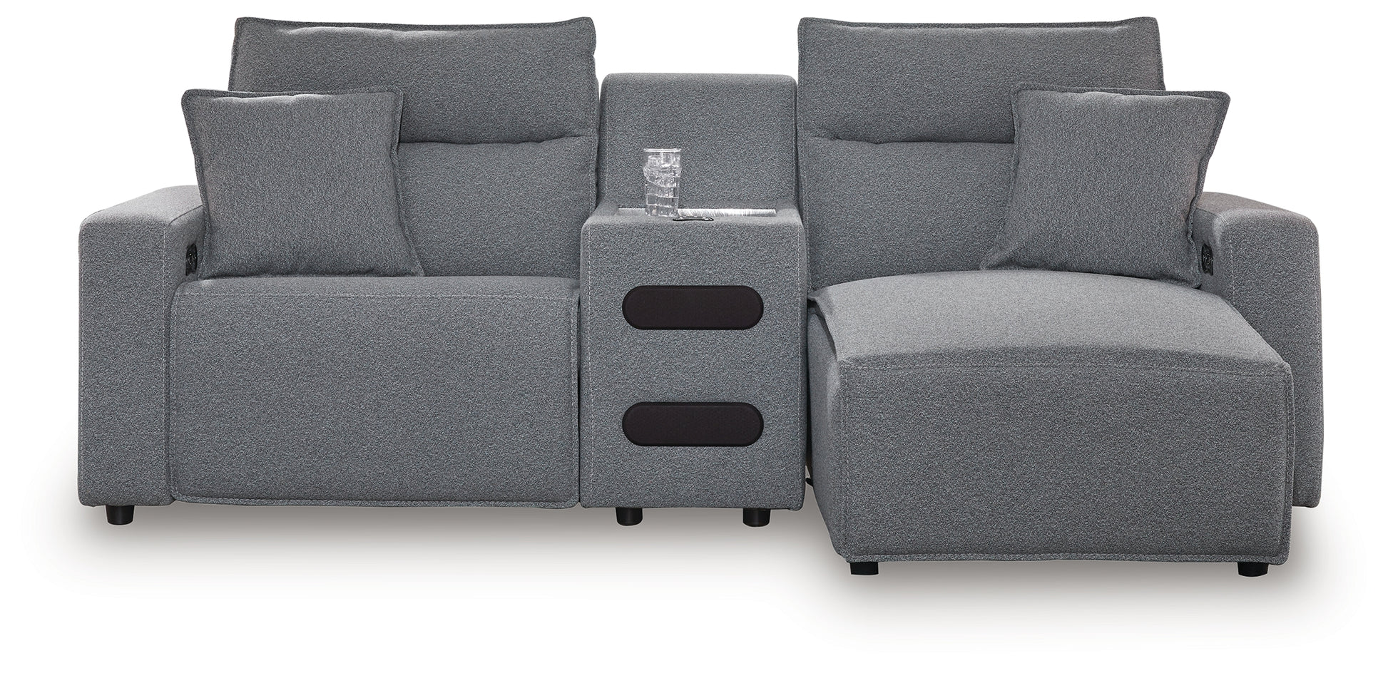 Looking cool and contemporary is great. But when it comes down to it, you’re all about low-maintenance lounging. With the performance fabric on this power reclining sectional with chaise and console, cleaning spills is a breeze. Its modular design caters to your ever-changing needs. And the console’s plexiglass top is the perfect beverage perch during family movie night or when guests drop by. It's proof that modern design and superb comfort go hand in hand.