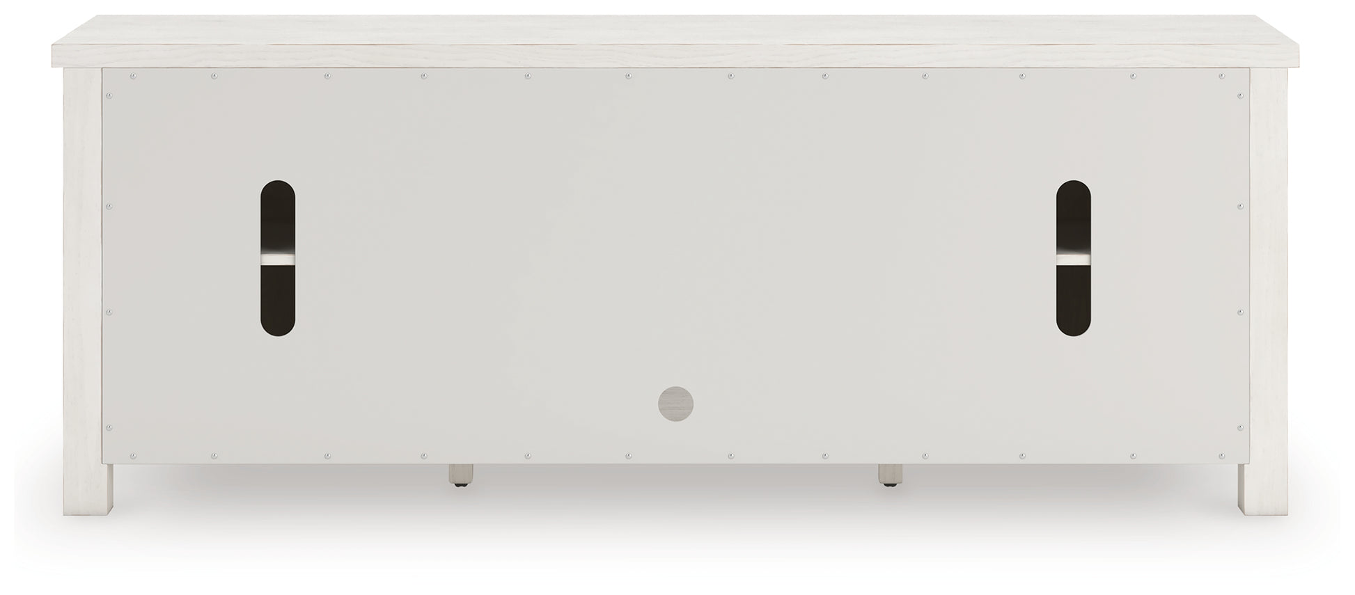 This TV stand is sure to impress when it’s time to relax after a tough day. With an antiqued white finish and wood grain texture, modern farmhouse-style design has never been so fashionable. Its cabinets and adjustable shelves are ideal for keeping all your equipment well organized and displaying your treasures. And that storage drawer is perfect for smaller accessories, bringing even more function to your entertainment space. All that’s missing is you.