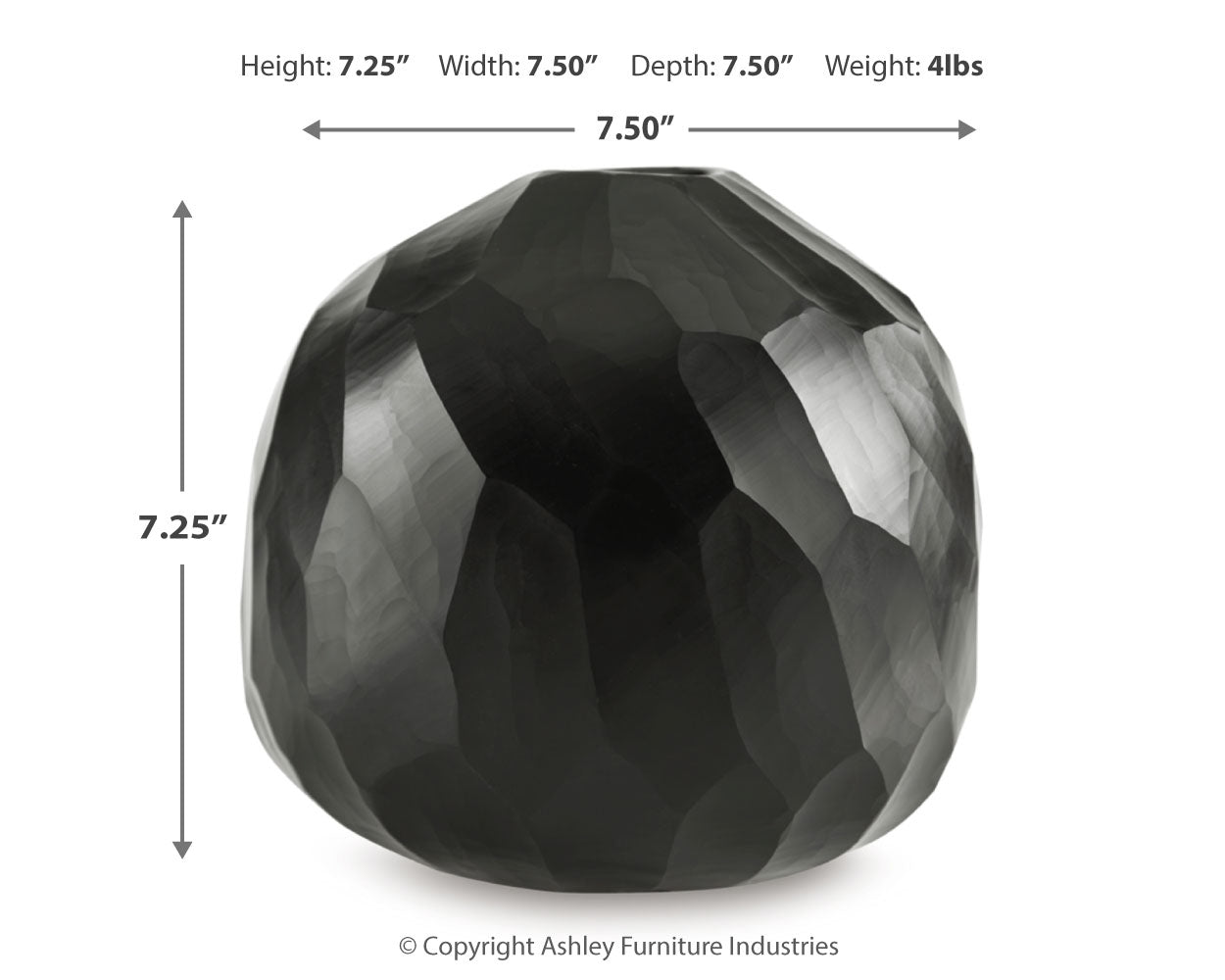 Put the accent on contemporary style with this vase. Wowing with multiple hand-carved facets, the cool black glass delivers true textural appeal from every angle. It’ll bring an artful touch wherever you see fit.