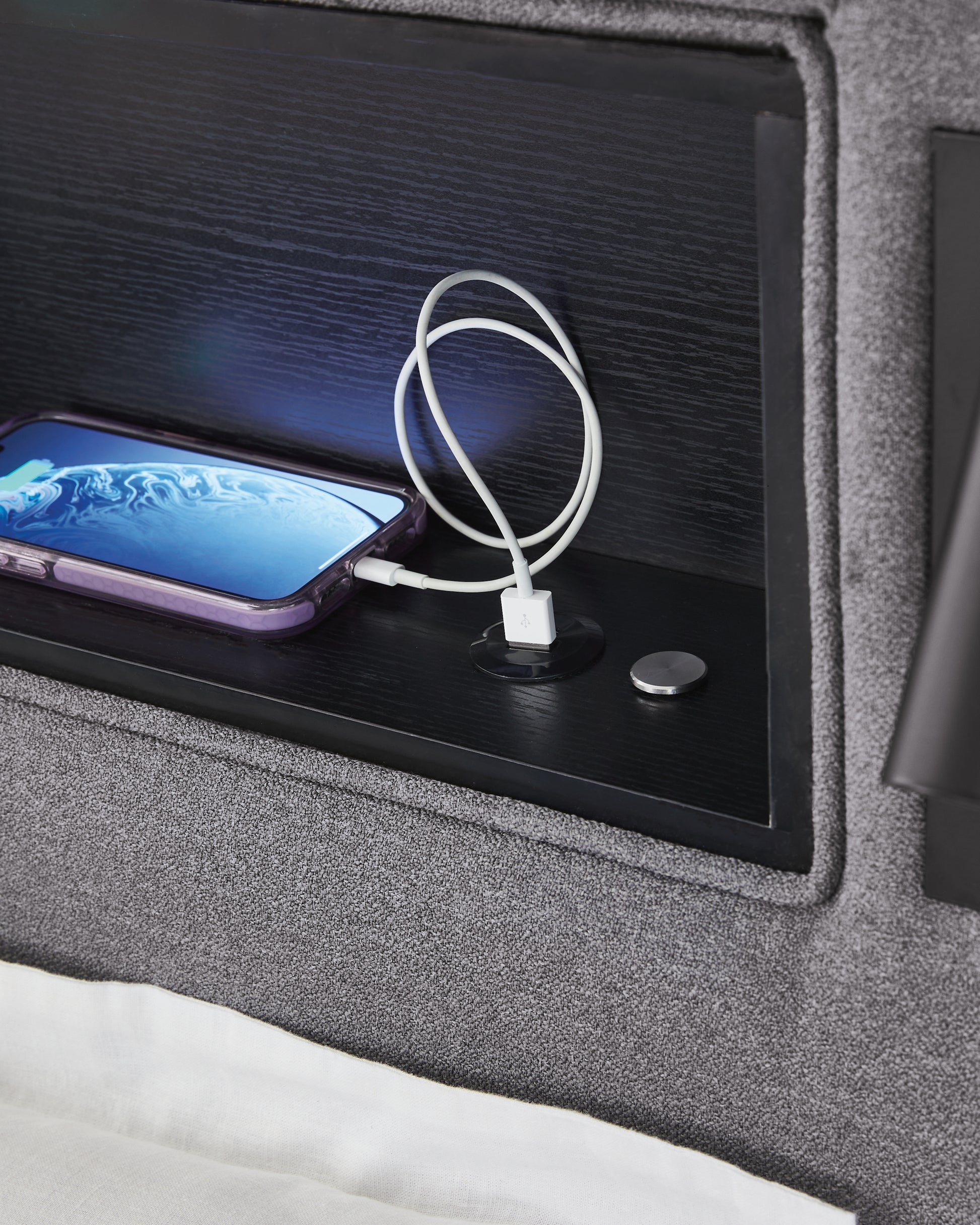 Snooze in style with this twin upholstered bed. It brings delightful function to winding down before bedtime, with an adjustable LED reading light on each side. And for added flair, multicolored ambient lighting brings an ultra-cool vibe to the overall look. Combining modern convenience with captivating design, this bed revamps your restful retreat like never before.